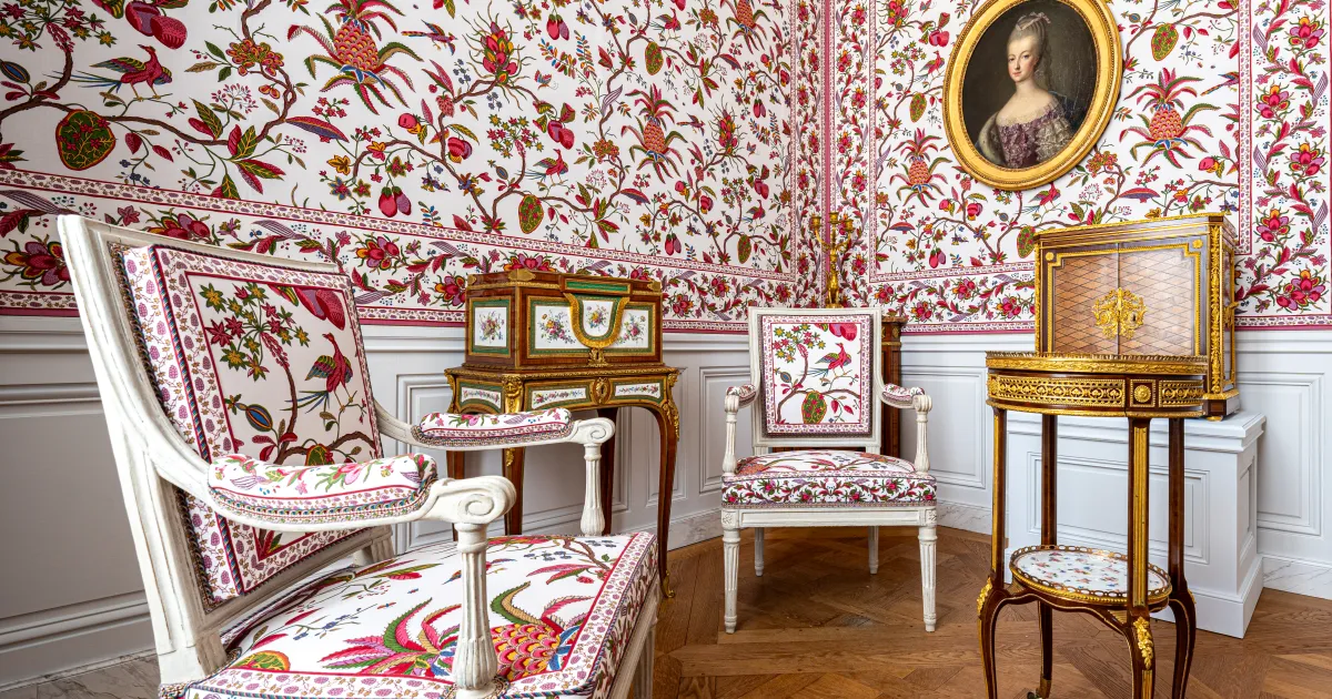 Le public est invité à découvrir un nouvel aménagement évoquant la vie intime de Marie-Antoinette. Les espaces se composent ainsi : deux pièces « à la Reine », c'est-à-dire une salle à manger et un boudoir, un cabinet du Billard (un jeu dont la cour raffolait depuis Louis XIV) devenu salon de compagnie, trois pièces dévolues aux Premières femmes de chambre et trois pièces pour le service. La restitution des toiles de Jouy, élément central du réaménagement du deuxième étage, a été réalisée pour la plupart selon la technique traditionnelle au cadre plat, mettant en valeur la préservation des métiers d'art, grâce au mécénat et au savoir-faire de la Maison Pierre Frey. Ainsi, les pièces à la Reine sont par exemple décorées de la toile au Grand Ananas, l'une des plus belles productions de la Manufacture de Jouy au XVIIIe siècle.
