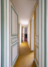 L’objectif de la restauration qui s’achève était de retrouver l’atmosphère d’intimité et de délicatesse qui se dégageait de ce lieu, expression de la quintessence de l’art de vivre au XVIIIe siècle. Le chantier a permis de réaliser des consolidations structurelles et la mise de tous les réseaux d’éclairage aux normes et de sécurité, ainsi que des travaux d’isolation des combles et du brisis pour améliorer les performances énergétiques de l’appartement. Après des reprises sur les sculptures des boiseries, la dorure ancienne a été nettoyée, restaurée et complétée dans les pièces principales de l’appartement. La peinture à la colle