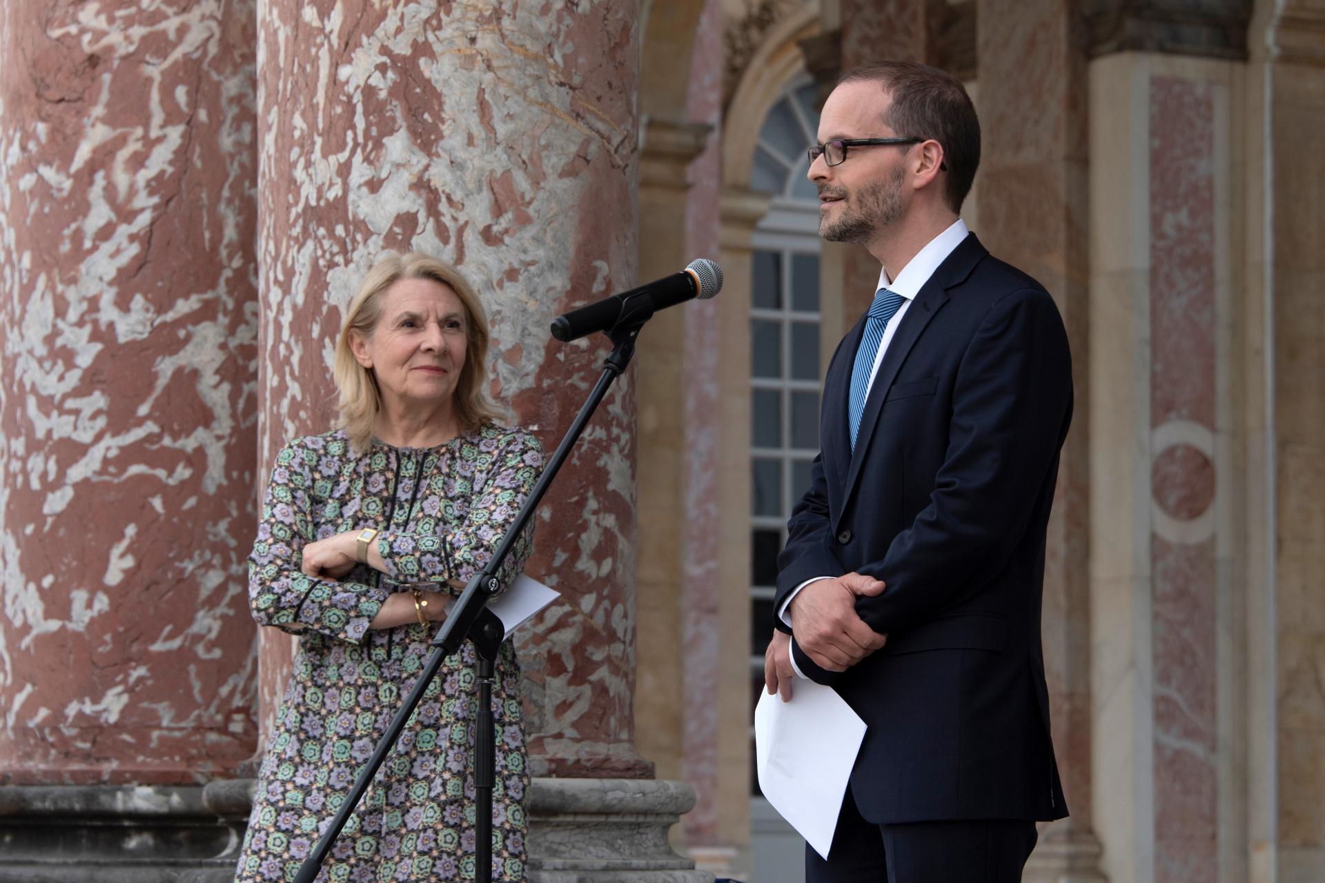 Le Prix château de Versailles du livre d’Histoire 2022 est décerné à Patrick Barbier pour son ouvrage Marie-Antoinette et la musique paru aux éditions Grasset, par la Présidente du château de Versailles, Catherine Pégard.