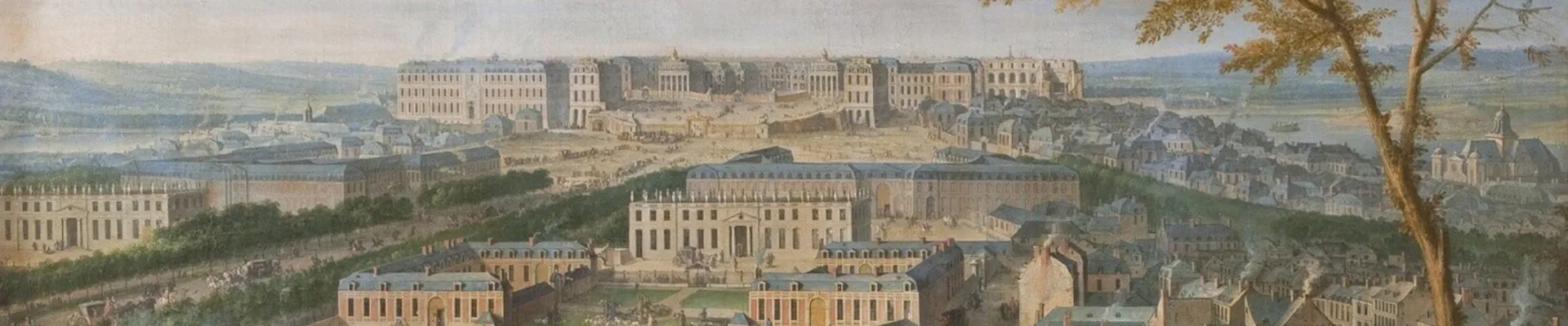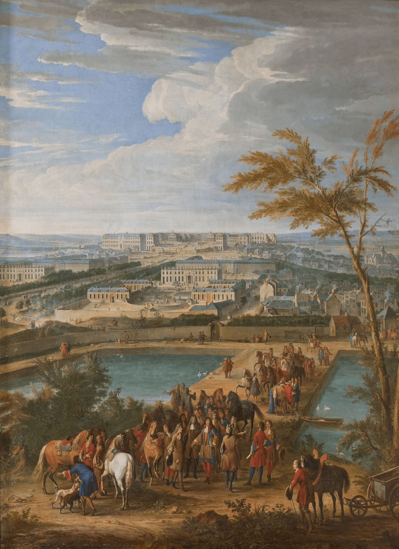 Vue perspective de la ville et du château de Versailles depuis la butte Montbauron ; visite du roi du 14 novembre 1685,