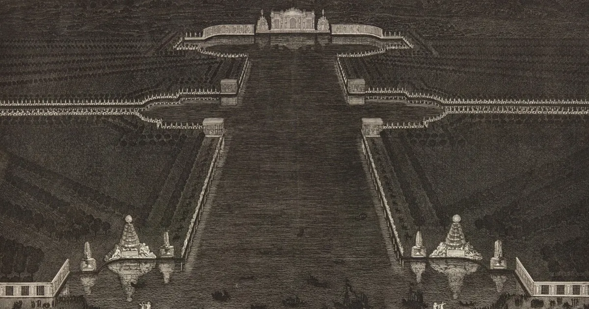 A la suite de la conquête de la Franche-Comté en 1674, Louis XIV organise de grandes fêtes à Versailles. Durant ces festivités, les jardins sont à l’honneur, comme en témoigne cet extrait qui relate la mise en lumière du parc du Château, jusqu’au Grand Canal. Les fontaines permettent un jeu de reflet qui magnifie encore l’ensemble.