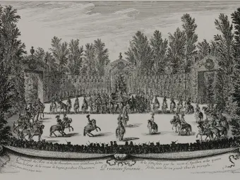 Cet extrait de La Gazette relate les événements festifs de la première journée des divertissements royaux intitulés Les Plaisirs de l’Ile enchantée qui ont lieu du 7 au 14 mai 1664.