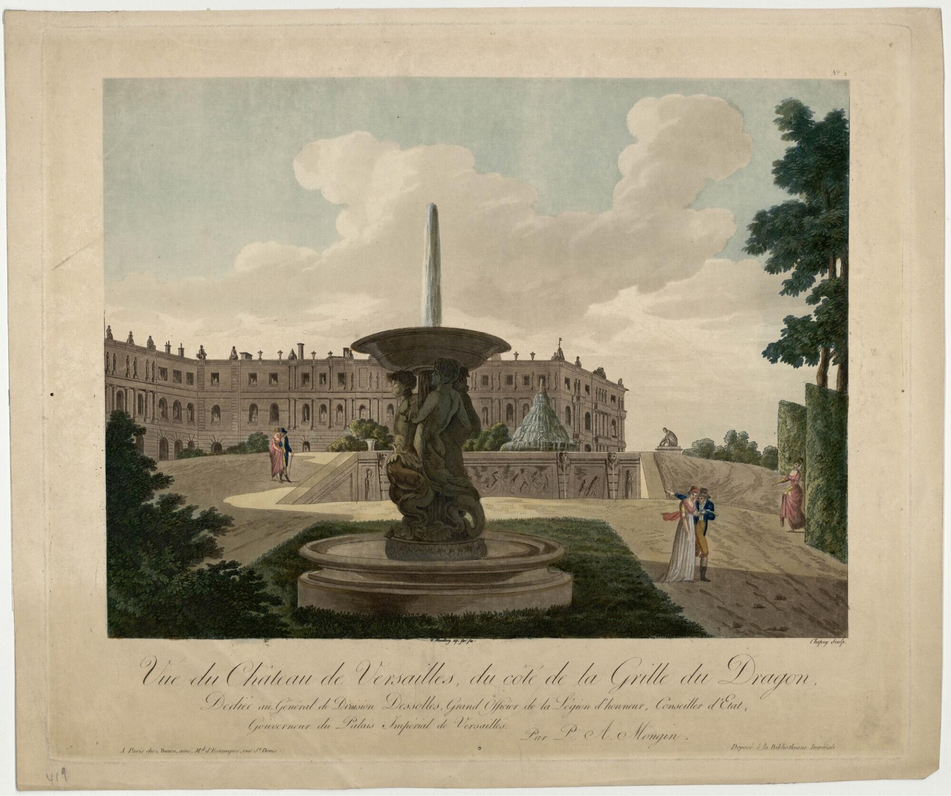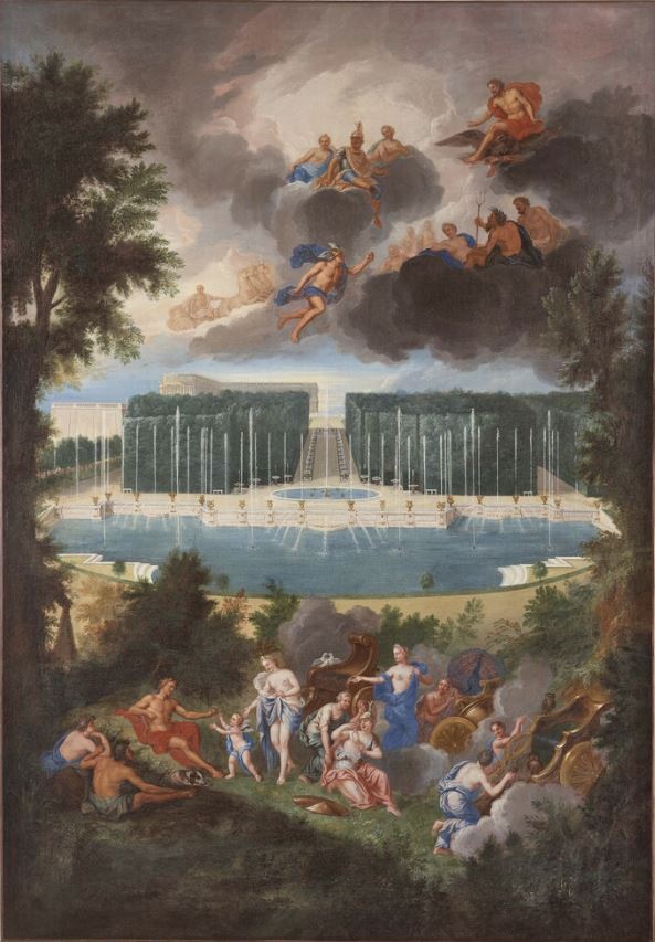 Vue du bassin de Neptune, du bassin du Dragon et de l'allée d'Eau avec le jugement de Pâris