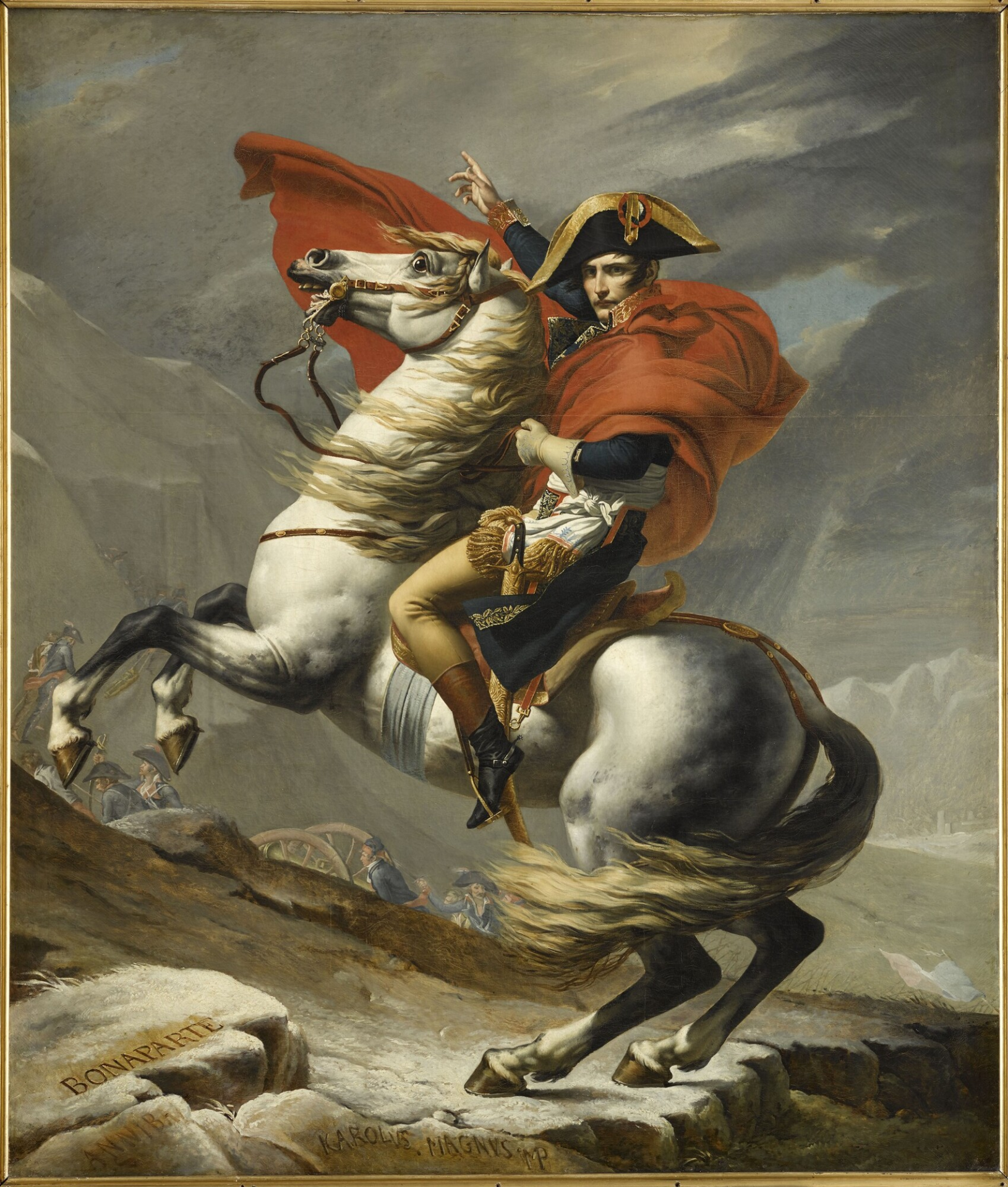 Bonaparte franchissant le Grand-Saint-Bernard est un portrait équestre de Napoléon Bonaparte réalisé par le peintre Jacques-Louis David à l’occasion de la seconde campagne d’Italie (1799-1800). Les Autrichiens souhaitent récupérer les territoires perdus en Italie du Nord, mais sont battus par Napoléon le 14 juin 1800 à Marengo.