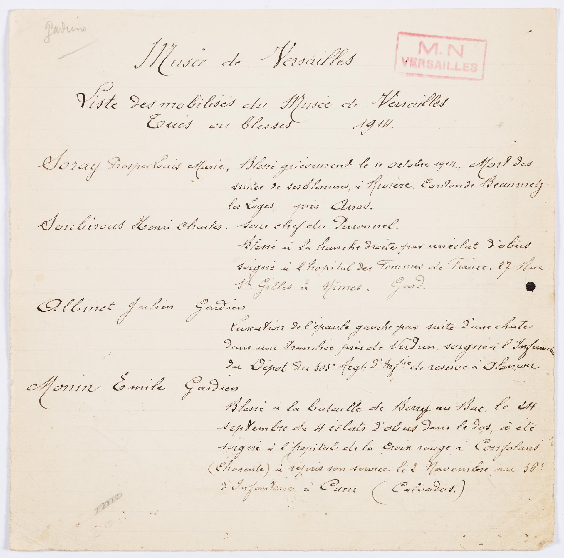 Le Château se trouve déserté car les gardiens, surveillants, jardiniers et fontainiers sont mobilisés.
