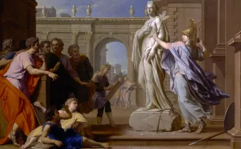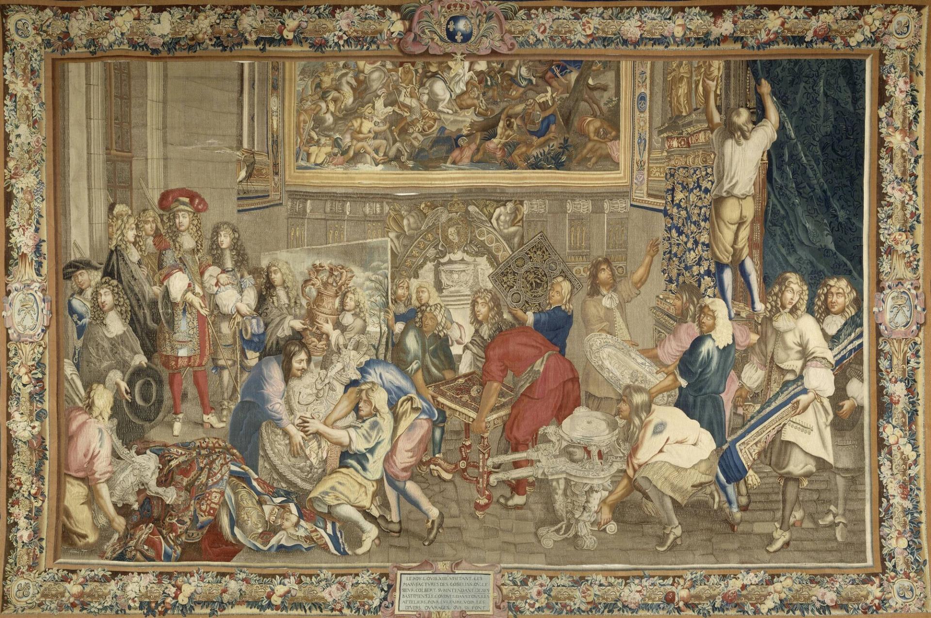 A l'origine un atelier de teinture créé par Jehan Gobelin puis racheté par l'un des principaux ministres de Louis XIV, Jean-Baptiste Colbert, La Manufacture des Gobelins est un regroupement d'ateliers artisanaux de tapisserie, de peinture, d'orfèvrerie, d'ébéniste, de fondeur et de graveur. Sous la direction de Le Brun, la production de la manufacture, destinée à l'ameublement des Maisons royales et aux présents diplomatiques, acquiert par sa magnificence une réputation internationale.