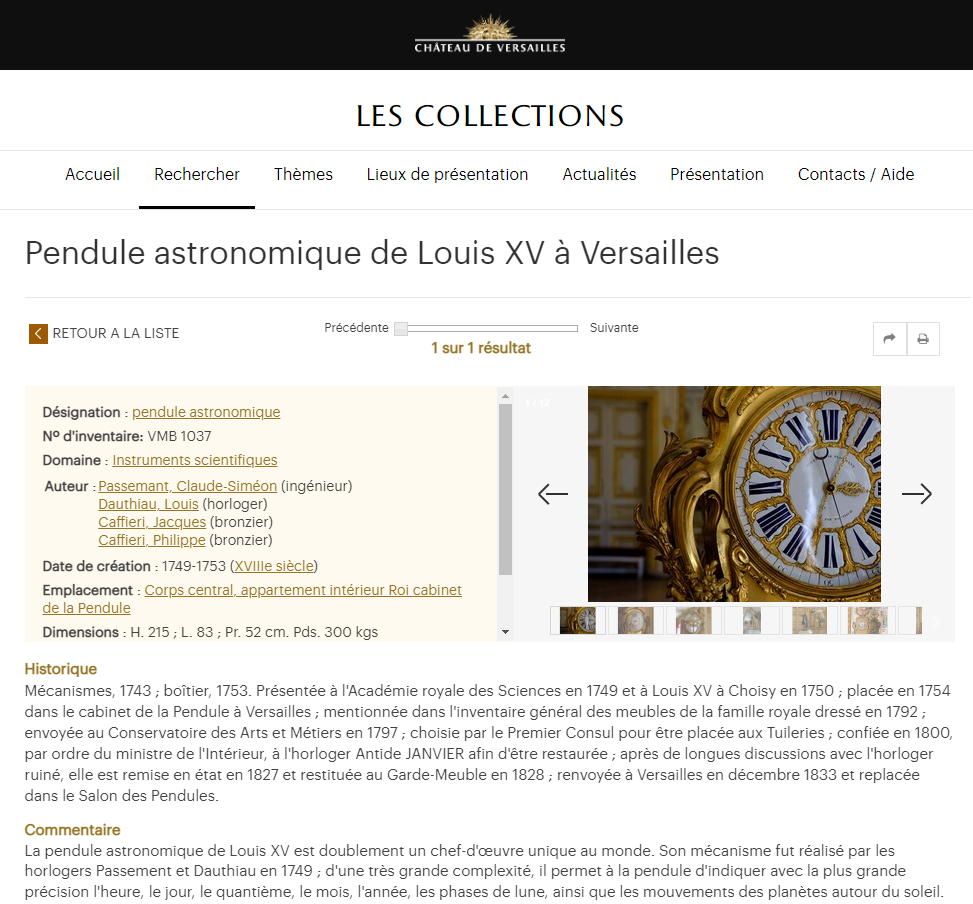 Icône des collections du château de Versailles, la grande pendule astronomique de Passemant associe techniques scientifiques et artistiques complexes qui font d'elle un véritable chef d'œuvre. Venez découvrir tous ses secrets à l'aide de cette ressource :