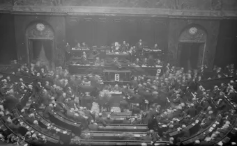 Pour la plupart d’entre nous, Versailles est le palais des rois, le décor qui fut destiné à mettre en scène le pouvoir personnel du Roi-soleil. Toutefois, la présence du pouvoir politique au château ne s’est pas arrêtée avec le départ de la famille royale en octobre 1789, ni avec la fin de la monarchie en 1792. Depuis la Révolution, le pouvoir, qu’il soit impérial, monarchique ou républicain, revient ponctuellement mais régulièrement à Versailles. Capitale de la monarchie absolue pendant un siècle, Versailles fut aussi, pendant près de 9 ans, la capitale de la IIIe République naissante. Entre mars 1871 et juillet 1879, le château fut le cadre de la consolidation du système républicain et du renoncement définitif des Français à la monarchie.