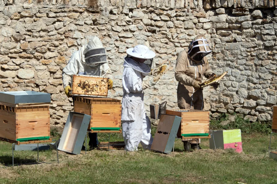 Les abeilles des ruches choisies sont d’une race locale, l’abeille noire d’Ile-de-France, afin de soutenir les populations indigènes d’abeilles. De plus, la production de miel est raisonnée et très limitée afin de ne pas déséquilibrer le ratio du nombre d’abeilles et de la disponibilité des ressources, véritable enjeu depuis 2020, - et l’instabilité des climats estivaux, trop humides ou trop secs.