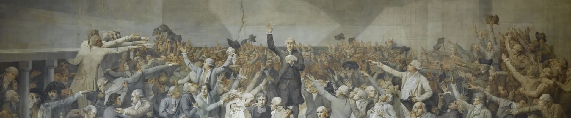 À l’occasion de l’inauguration du musée de la Révolution française dans la salle du Jeu de Paume, en 1883, le bâtiment est entièrement restauré. Jules Ferry (1832-1893), alors ministre de l’Instruction publique et des Beaux-Arts, passe commande au peintre Luc-Olivier Merson d’une toile monumentale, exécutée d’après l’œuvre de Jacques-Louis David (1748-1825), et commémorant le serment des députés de l’Assemblée nationale dans ces murs, le 20 juin 1790.